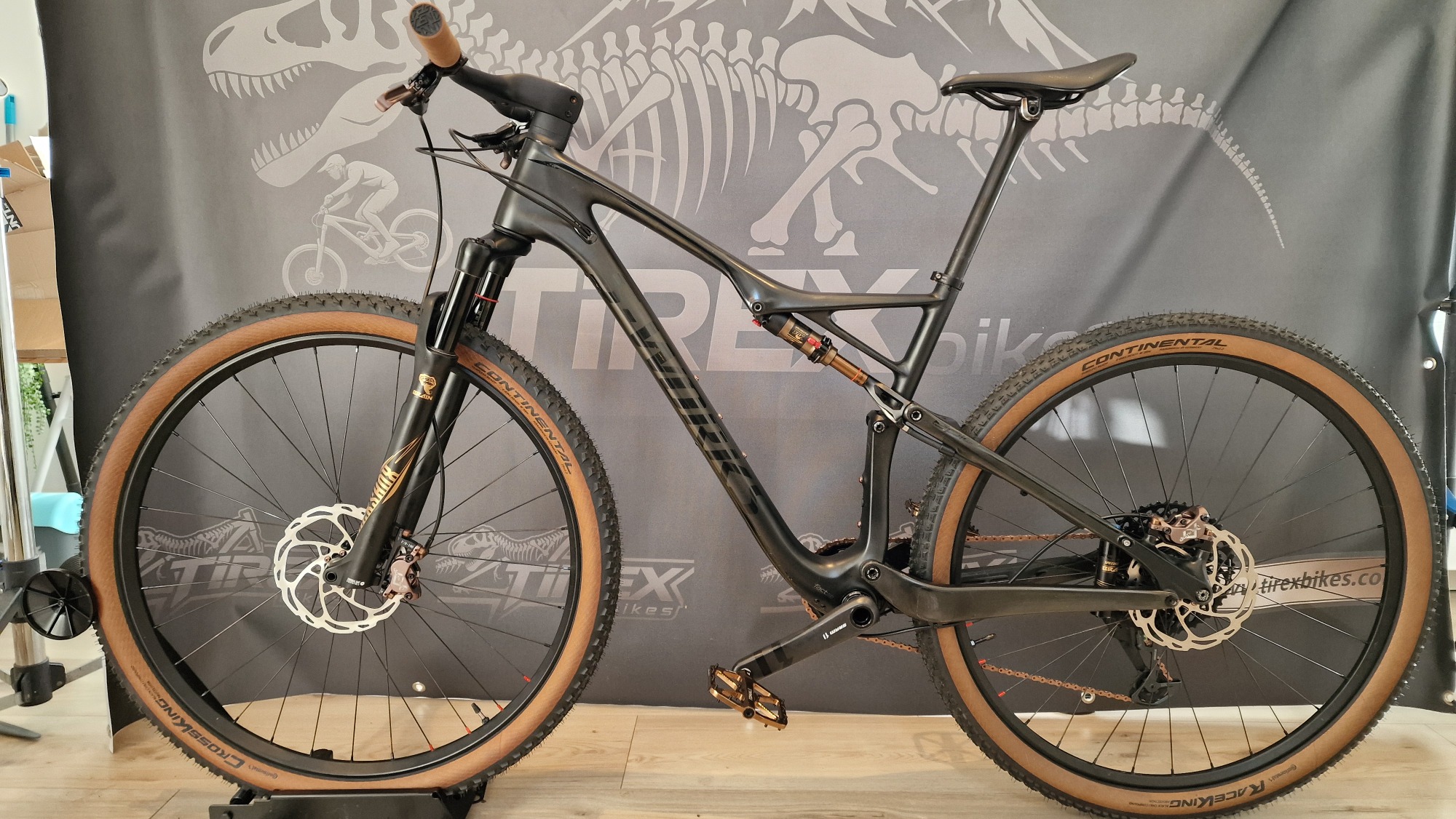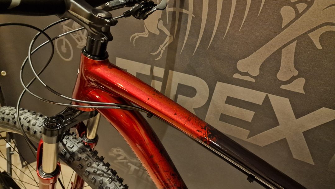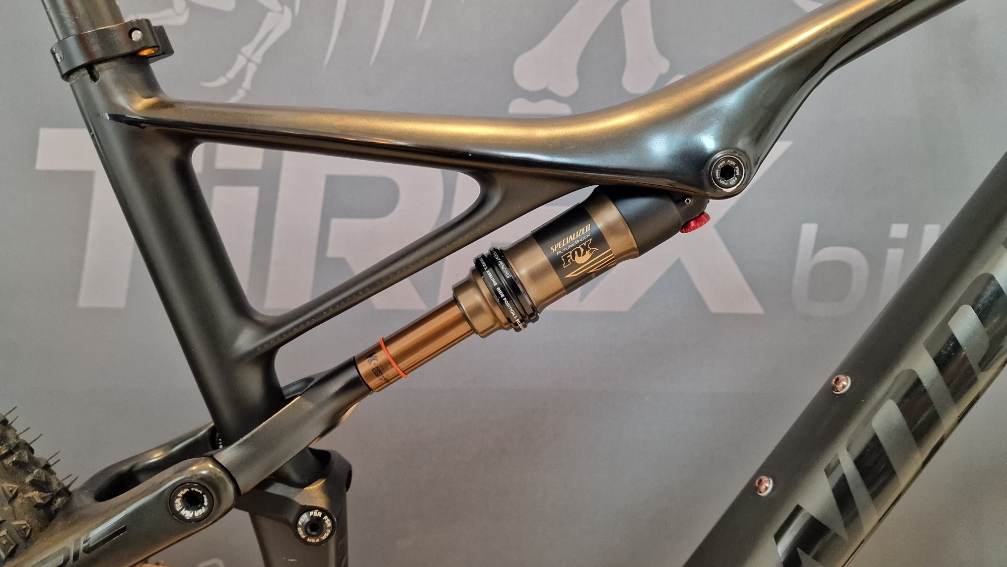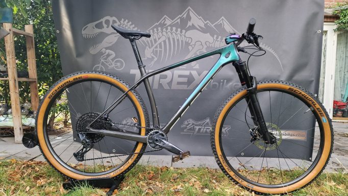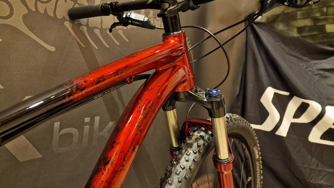 Compleet gereviseerde MTB waarbij een 3 laags custom paint (S-WORKS 2025 colour theme) is aangebracht.