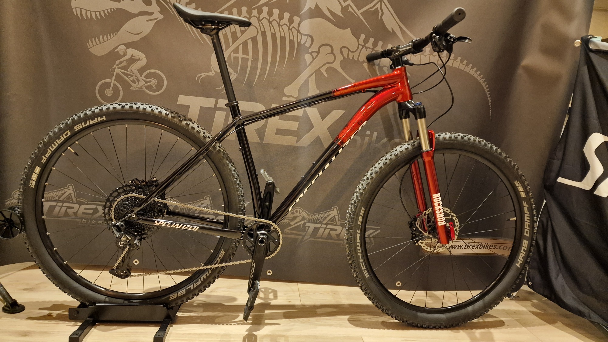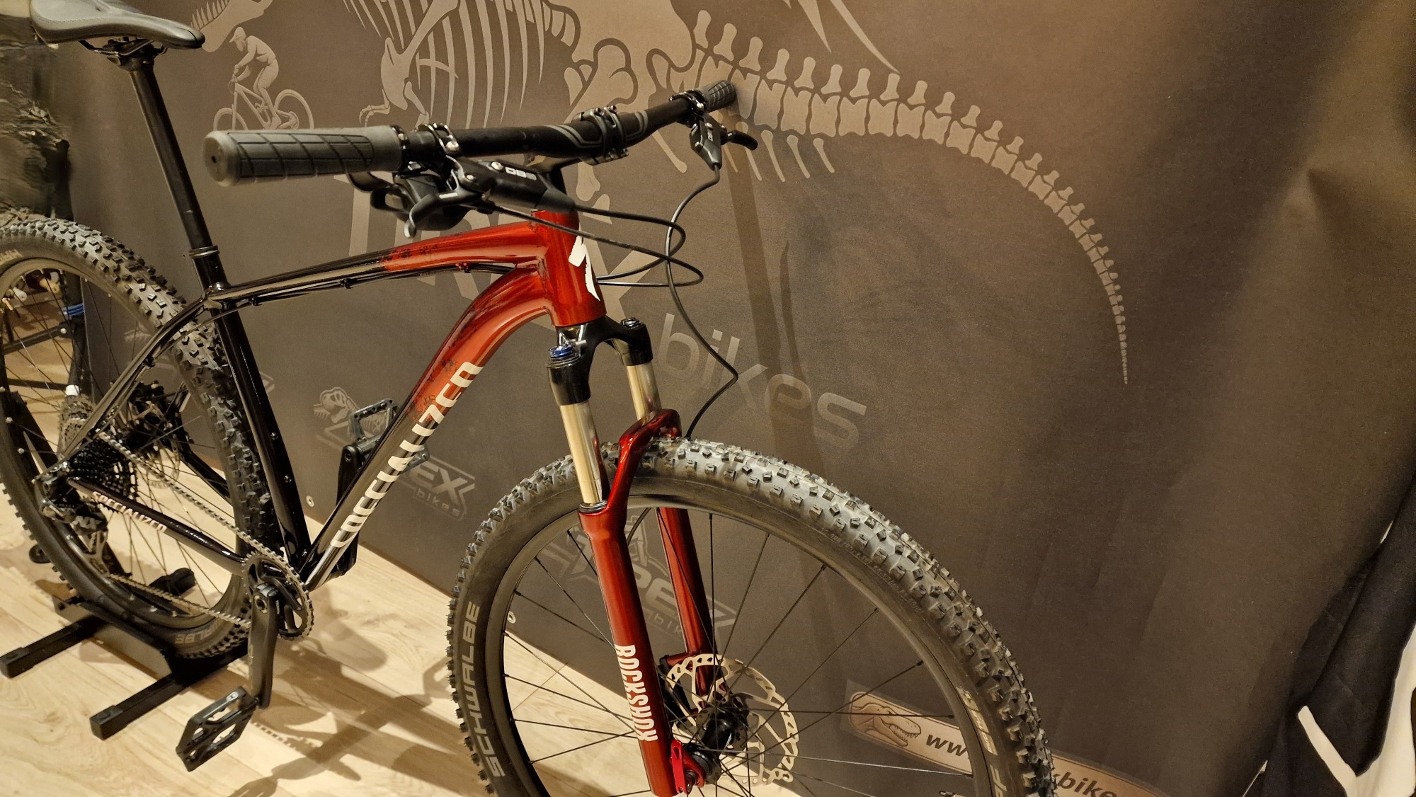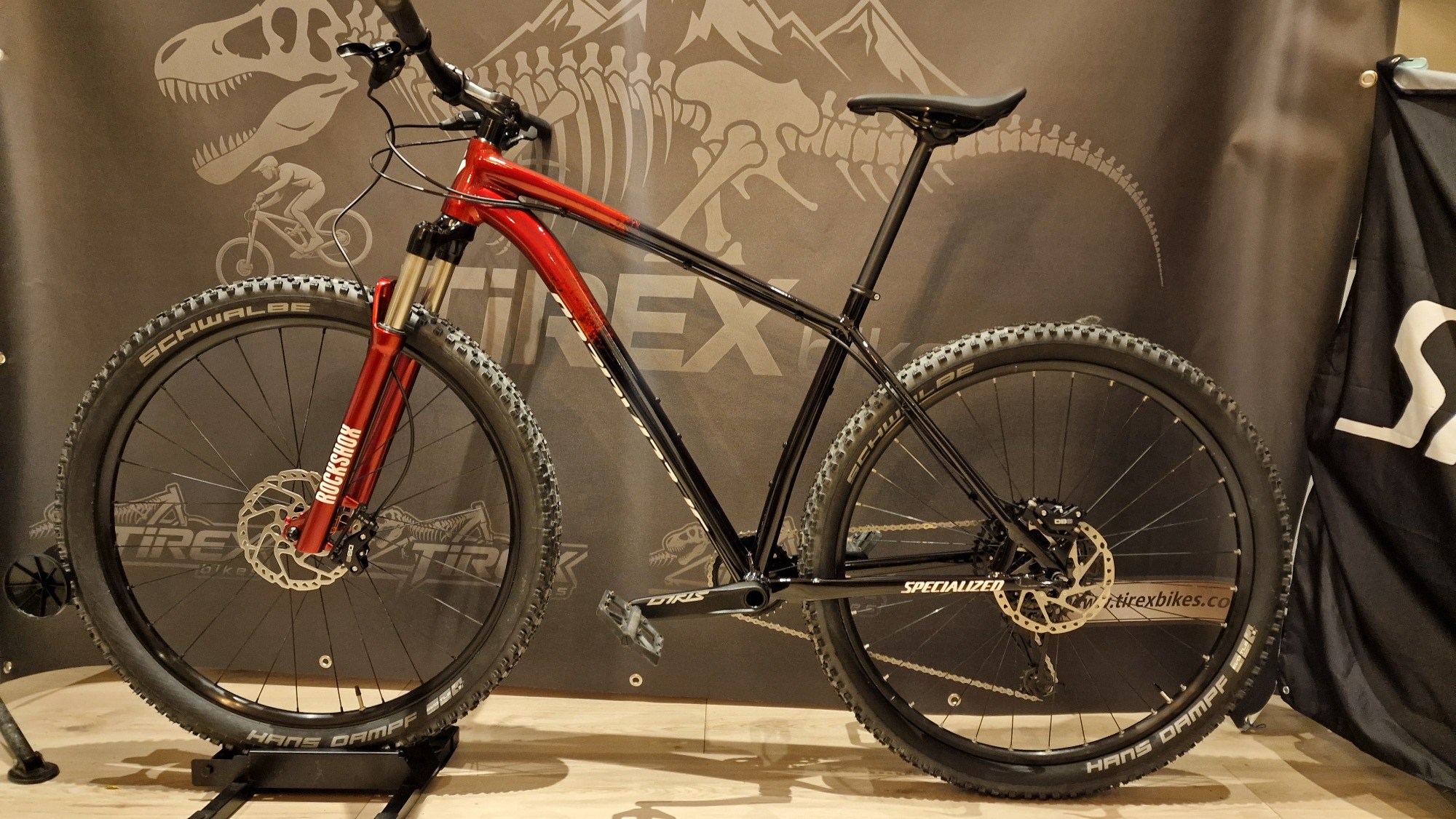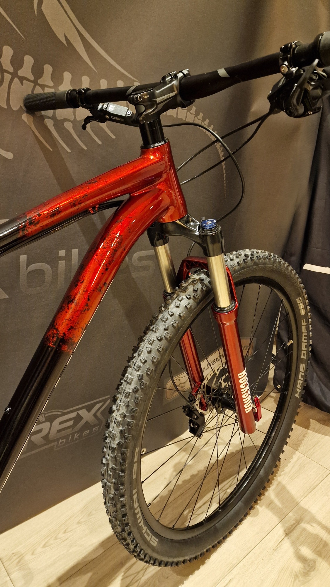 Compleet gereviseerde MTB waarbij een 3 laags custom paint (S-WORKS 2025 colour theme) is aangebracht.